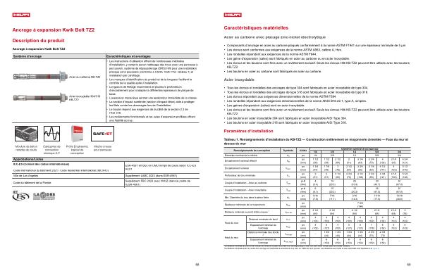• Les écrous et les boulons sont finis avec un revêtement exclusif. Seuls les écrous Hilti KB-TZ2 peuvent être utilisés avec les boulons KB-TZ2.