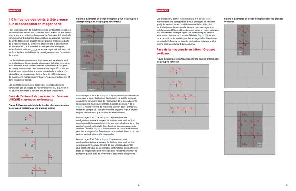Les illustrations suivantes, basées sur les dispositions de conception des ancrages de maçonnerie de l’ ICC-ES AC01 et AC58, sont destinées à des fins d’ illustration uniquement.