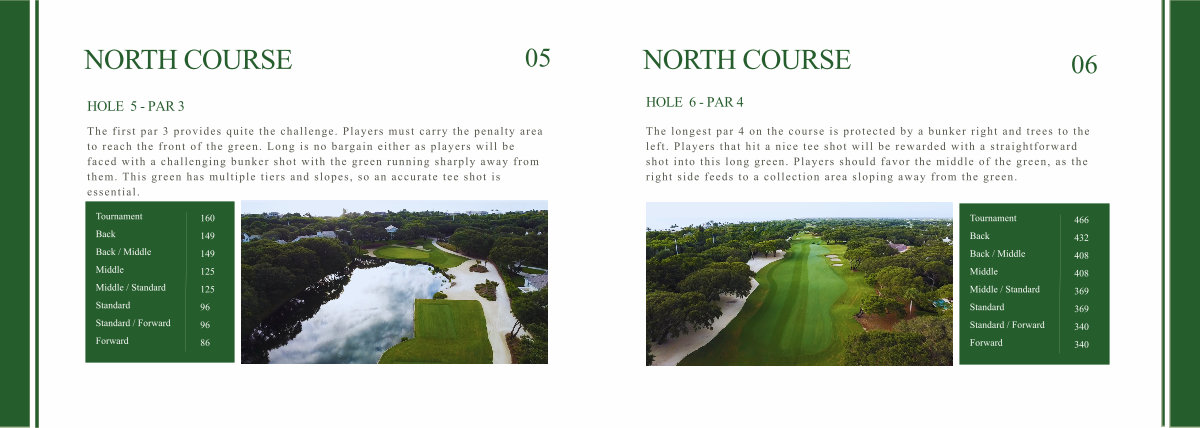 The first par 3 provides quite the challenge. Players must carry the penalty area to reach the front of the green. Long is no bargain either as players will be faced with a challenging bunker shot with the green running sharply away from them. This green has multiple tiers and slopes, so an accurate tee shot is essential.