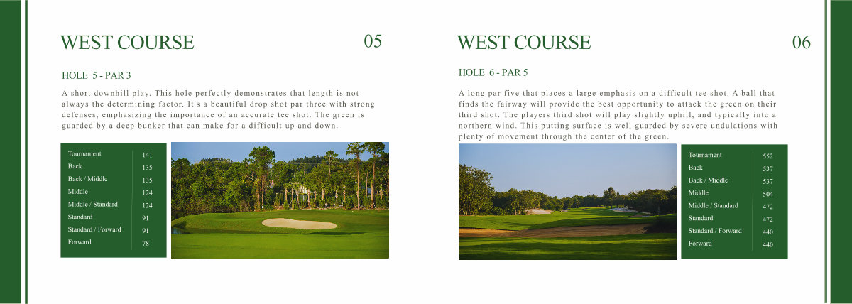 A long par five that places a large emphasis on a difficult tee shot. A ball that finds the fairway will provide the best opportunity to attack the green on their third shot. The players third shot will play slightly uphill, and typically into a northern wind. This putting surface is well guarded by severe undulations with plenty of movement through the center of the green.