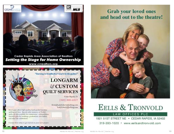 Grab your loved ones and head out to the theatre! 319-393-1020 • www.eellsandtronvold.com Matilda the Musical | theatrecr.org 13
