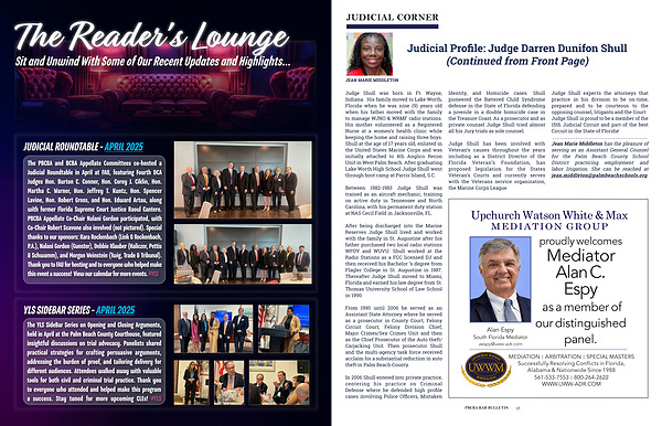Judge Shull expects the attorneys that practice in his division to be on-time, prepared and to be courteous to the opposing counsel, litigants and the Court. Judge Shull is proud to be a member of the 15th Judicial Circuit and part of the best Circuit in the State of Florida!