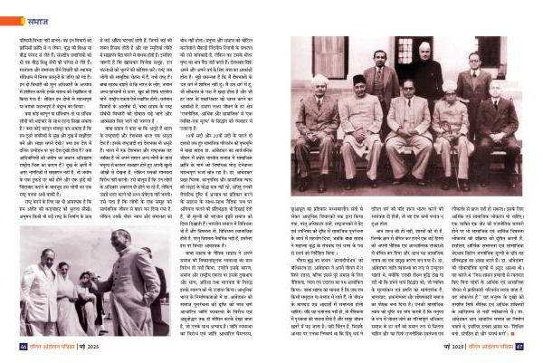 बात शसरि की ही नहीं, शासरिों की भी है, जिनके ज्ान से वंमचित कर हमने एक बड़े हिससे को अपनी भौतिक एवं आध्यात्मिक संपदाओं से वंमचित कर मद्या और आज ्यह सामाजिक तनाव का एक प्रमुख कारण बन ग्या है । डा. आंबेडकर जाति व्यवस्ा का जड़ से उत्मदूलन चिाहते थे, क्योंकि उनकी तीक्ण बुद्धि देख पा रही थी कि हमने कर्म सिद्धांत को, जो व्यक्ति के मदूल्यांकन एवं प्रगति का मार्गदर्शक है, भाग्यवाद, अकर्मण्यता और शोषणकारी समाज का पोषक बना मद्या है । उनकी सामाजिक त््या्य की दृन््ट ्यह मांग करती है कि मनुष्य के रूप में जीवन जीने का गरिमापदूणता अधिकार समाज के हर वर्ग को समान रूप से मिलना चिाहिए और ्यह सिर्फ राजनीतिक सवतंरिता एवं