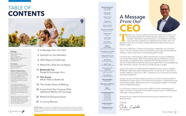 The BetterLife Magazine is the official publication of BetterLife, a Fraternal Benefit Society, 6522 Grand Teton Plaza, Madison, WI 53719. It is published four times annually for the benefit of members and their families. Third-class postage paid at Pontiac, IL.