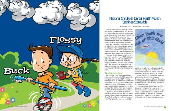 Through two major snowstorms that made February the snowiest on record , two rambunctious twins made their way into classrooms and dental offices across Pennsylvania . The McGrinn Twins , Flossy and Buck , known for their sparkling smiles and active lifestyle , are the newest creation of the ADA to promote National Children ’ s Dental Health Month ( NCDHM ). Buck , who loves adventures and sports , and his sister Flossy , who loves math and science , are different in many ways but they agree on one thing : the importance of good oral health . Together , they work as a team urging kids to get healthy , get active and maintain a bright smile .