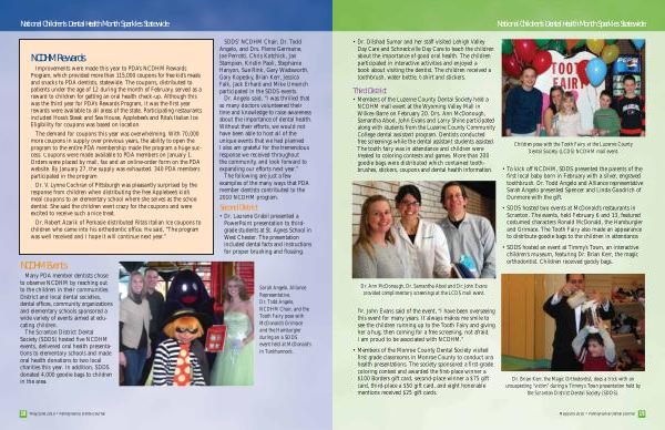 Many PDA member dentists chose to observe NCDHM by reaching out to the children in their communities . District and local dental societies , dental offices , community organizations and elementary schools sponsored a wide variety of events aimed at educating children . The Scranton District Dental Society ( SDDS ) hosted five NCDHM events , delivered oral health presentations to elementary schools and made oral health donations to two local charities this year . In addition , SDDS donated 4,000 goodie bags to children in the area .