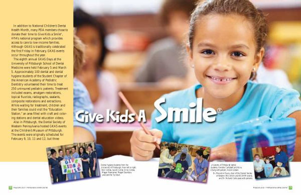 Dr . MaryAnn Davis , chair of the Dental Society of Western PA ’ s GKAS and NCDHM events , and Dr . Richard Celko pose with patients .