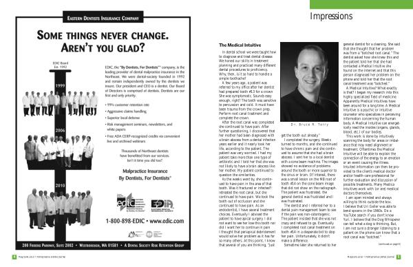 The dentist and I referred her to a dental pain management team to see if the pain was non-odontogenic . The patient insisted that she was not crazy and refused to go . Eventually I completed root canal treatment on tooth # 14 in a desperate bid to stop her pain . Unfortunately , it didn ’ t make a difference . Sometime later she returned to her general dentist for a cleaning . She said that she thought that her problem was from a “ botched root canal .” The dentist asked how she knew this and the patient told her that she had contacted a Medical Intuitive she found on the Internet and that this person diagnosed her problem on the phone and told her that the root canal treatment was “ botched .”
