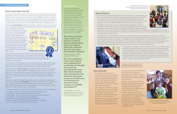 Included in the lesson plan kits were instructions for entering the PDA-sponsored , thirdgrade poster contest . For decades , the contest has encouraged Pennsylvania third-grade students to demonstrate what they learned during their NCDHM classroom lesson by drawing a poster that reflects their oral health knowledge . PDA annually awards $ 850 in monetary prizes to the students who design the top three posters . More than 150 clever , well-designed posters were submitted to the PDA Central Office for judging this year .