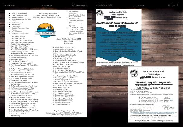 W . S . C . A Open Horse Show Sunday June 23 rd , 2024 -8:30 A . M