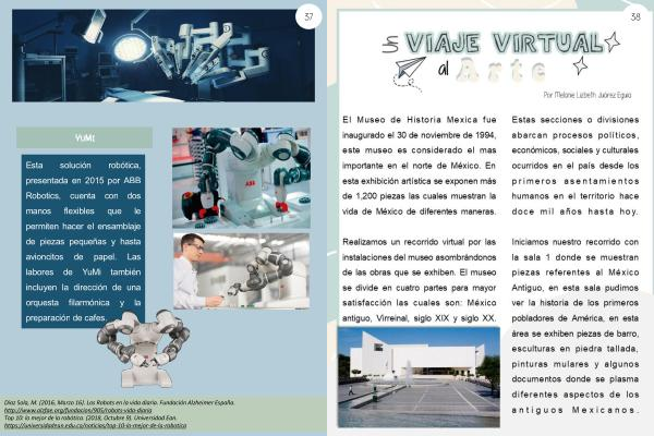 Díaz Sola , M . ( 2016 , Marzo 16 ). Los Robots en la vida diaria . Fundación Alzheimer España . http :// www . alzfae . org / fundacion / 905 / robots-vida-diaria Top 10 : lo mejor de la robótica . ( 2018 , Octubre 9 ). Universidad Ean . https :// universidadean . edu . co / noticias / top-10-lo-mejor-de-la-robotica