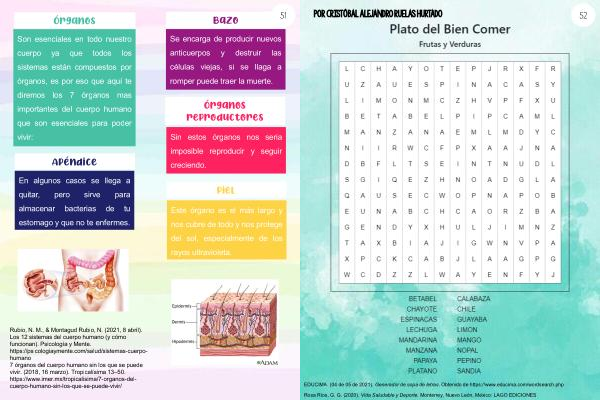 Rubio , N . M ., & Montagud Rubio , N . ( 2021 , 8 abril ). Los 12 sistemas del cuerpo humano ( y cómo funcionan ). Psicología y Mente . https :// psicologiaymente . com / salud / sistemas-cuerpohumano 7 órganos del cuerpo humano sin los que se puede vivir . ( 2018 , 16 marzo ). Tropicalísima 13 – 50 . https :// www . imer . mx / tropicalisima / 7-organos-delcuerpo-humano-sin-los-que-se-puede-vivir /