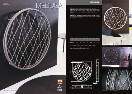 MEDUSA se svojim oblikom talasa šire?i toplinu u prostoru. MEDUSA je zaobljena, tanka, osmišljena tako da se elegantnom izvedbom skladno uklapa u interijer, a time postaje element visoke profinjenosti, ?ime oboga?uje prostor u koji je smještena. MEDUSA se isporu?uje sa spojevima, setom ventila i me?uosovinom 50 mm. MEDUSA je na raspolaganju u spektru boja “Serie Special” i na zahtjev u završnim obradama “Serie Elegance”, Spaljeni Bakar (kod. 3B) i Spaljeni Mesing (kod. 4B).