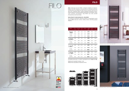 FILO upotpunjuje ponudu IRSAP u kategoriji radijatora za kupaonu. FILO se vrlo dobro uklju?uje u bilo koju poslovnu ili stambenu prostoriju. Karakteristika ovog radijatora je sitan promjer vodoravnih cijevi koje mu daju vitku i naklonjenu figuru. Lakiran postupkom disperzije sa epoksidnim prašinama može biti simpati?na alternativa ve? poznatim i ostvarenim modernim geometrijama. Ideja IRSAP koja može postatiti interesantna ponuda opremanja. MOGU?NOST DOGRIJAVANJA EL. GRIJA?EM Sa umetanjem specijalnog elektri?nog grija?a (na raspolaganju prema izboru), FILO može biti u funkciji i kada je sistem centralnog grijanja isklju?en.