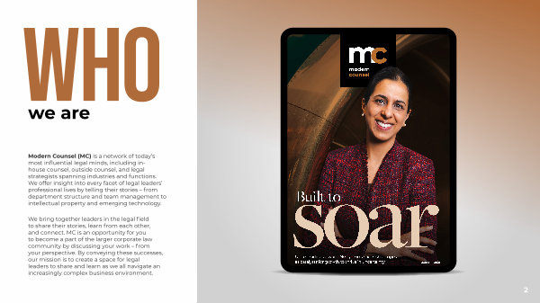 Modern Counsel( MC) is a network of today’ s most influential legal minds, including inhouse counsel, outside counsel, and legal strategists spanning industries and functions. We offer insight into every facet of legal leaders’ professional lives by telling their stories – from department structure and team management to intellectual property and emerging technology.