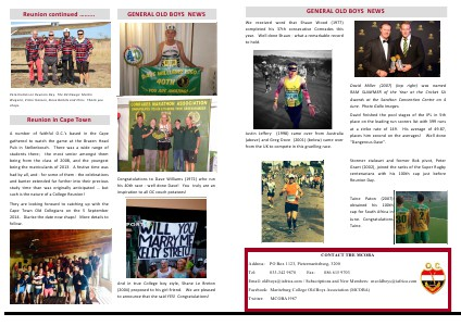 Email: oldboys@iafrica.com / Subscriptions and New Members: mcoldboys@iafrica.com