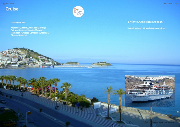 Mykonos (Greece), Kusadasi (Turkey), Patmos (Greece), Rhodes (Greece), Heraklion (Greece), Santorini (Greece) & Piraeus (Greece)