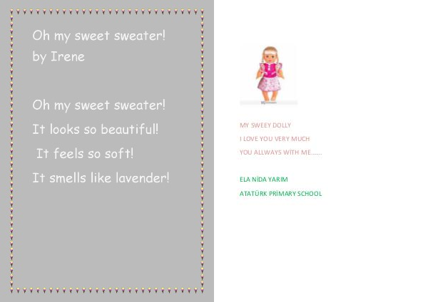Oh my sweet sweater! by Irene Oh my sweet sweater! It looks so beautiful! It feels so soft! It smells like lavender!