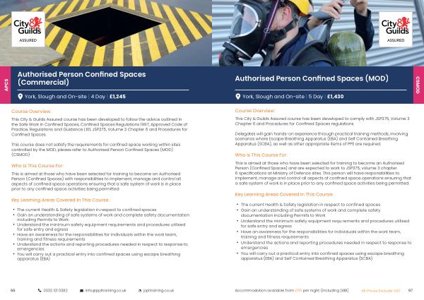 This City & Guilds Assured course has been developed to follow the advice outlined in the Safe Work in Confined Spaces , Confined Spaces Regulations 1997 , Approved Code of Practice , Regulations and Guidance L101 , JSP375 , Volume 3 Chapter 6 and Procedures for Confined Spaces .
