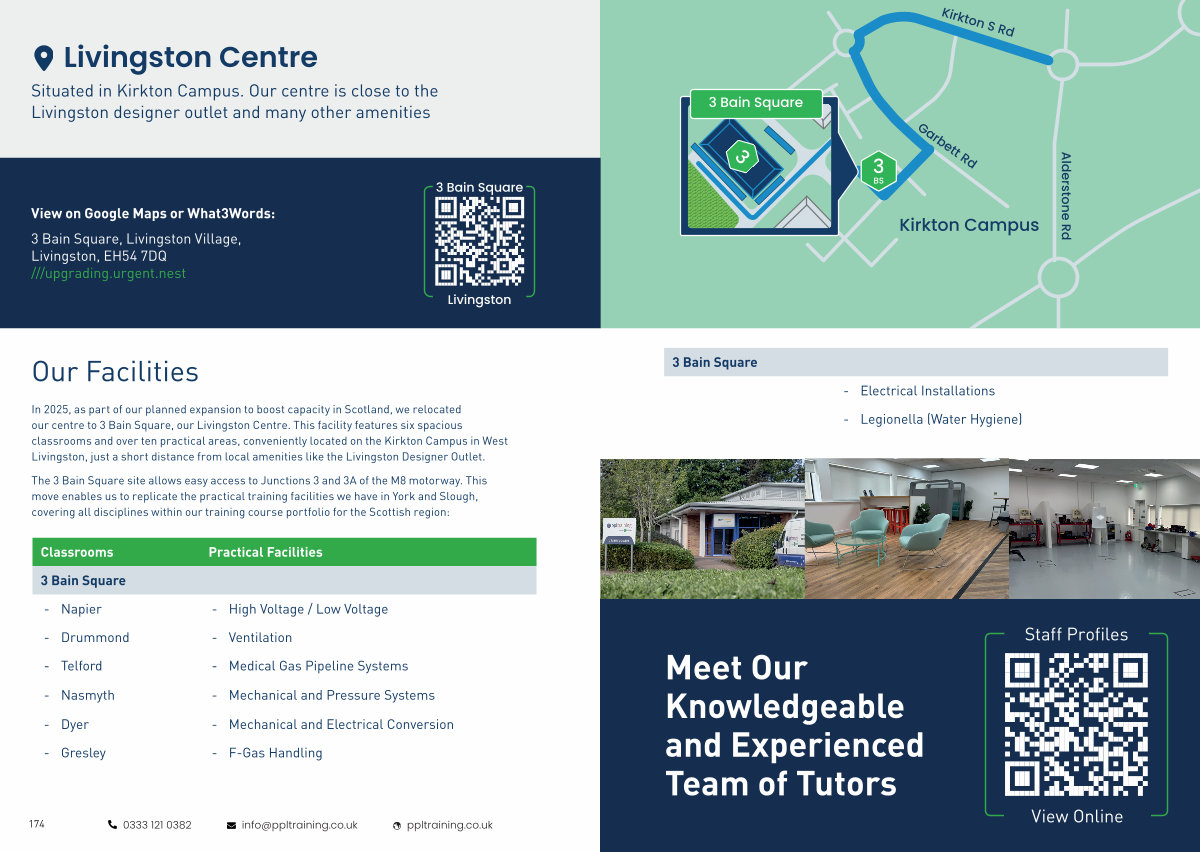 In 2025, as part of our planned expansion to boost capacity in Scotland, we relocated our centre to 3 Bain Square, our Livingston Centre. This facility features six spacious classrooms and over ten practical areas, conveniently located on the Kirkton Campus in West Livingston, just a short distance from local amenities like the Livingston Designer Outlet.
