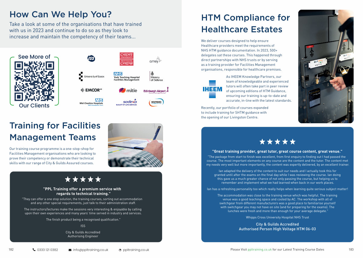 We deliver courses designed to help ensure Healthcare providers meet the requirements of NHS HTM guidance documentation. In 2023, 500 + delegates sat these courses. This happened through direct partnerships with NHS trusts or by serving as a training provider for Facilities Management organisations, responsible for healthcare premises.