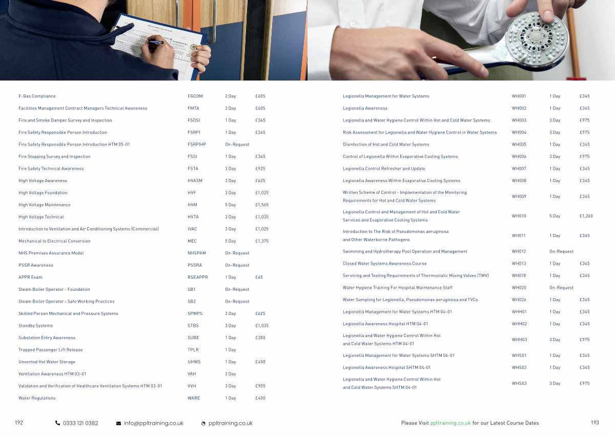 Legionella Management for Water Systems HTM 04-01 WHH01 1 Day £ 345