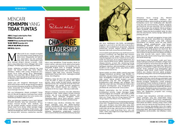 JUDUL Change Leadership Non-Finito PENULIS Rhenald Kasali PENERBIT Mizan dan Rumah Perubahan TAHUN TERBIT Desember 2015 JUMLAH HALAMAN 376 halaman HARGA Rp 109.000,-