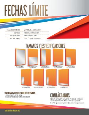 • IMÁGENES A COLOR DEBEN SER CMYK EN 300 DPI.