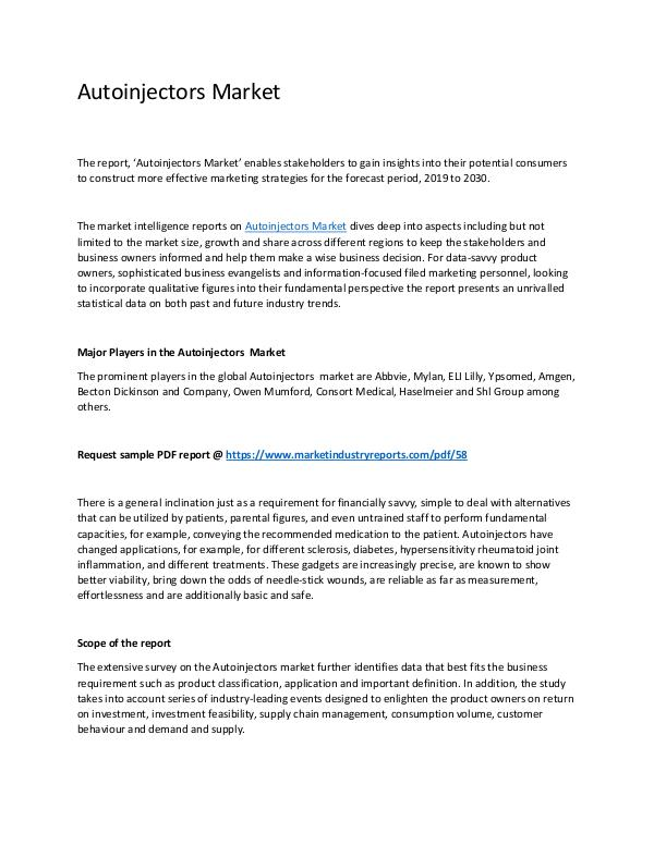 The report, ‘Autoinjectors Market’ enables stakeholders to gain insights into their potential consumers