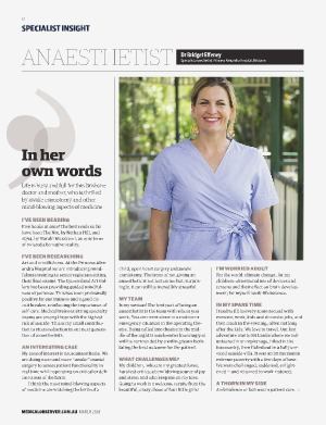 Specialist anaesthetist, Princess Alexandra Hospital, Brisbane.
