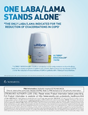ULTIBRO ® BREEZHALER ® 110/50 (indacaterol maleate/glycopyrronium bromide (glycopyrrolate)). INDICATION: Once-daily maintenance bronchodilator treatment