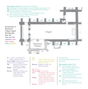 Ground plan of Winchester College Chapel showing glass from the 14th and 15th centuries , early 16th century , 1820s and 1862 . |