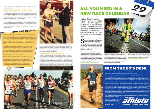 I have always been proud of our Modern Athlete calendar , especially since it has been the only full calendar published by a running mag in SA for quite some time , and I believe we provide a useful resource for the running community . This new-look online calendar therefore feels like a culmination of all those years of hard work .