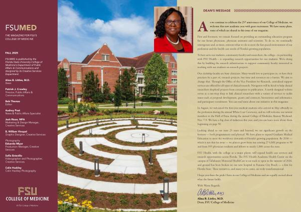 FSUMED is published by the Florida State University College of Medicine’ s Department of Public Affairs & Communications and designed by its Creative Services Department.