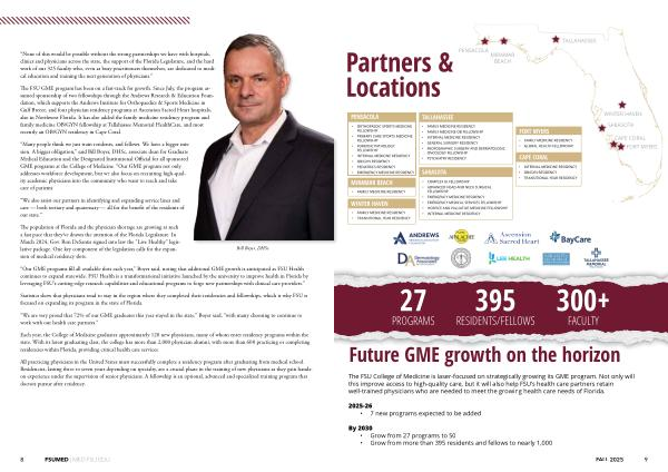The FSU GME program has been on a fast-track for growth. Since July, the program assumed sponsorship of two fellowships through the Andrews Research & Education Foundation, which supports the Andrews Institute for Orthopaedics & Sports Medicine in Gulf Breeze, and four physician residency programs at Ascension Sacred Heart hospitals, also in Northwest Florida. It has also added the family medicine residency program and family medicine OB / GYN fellowship at Tallahassee Memorial HealthCare, and most recently an OB / GYN residency in Cape Coral.