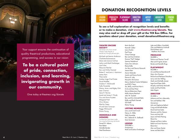 DIRECTOR $ 1,500 + Johanna and Terry Abernathy Tom and Kathleen Aller Anonymous John and Stephanie Ballard Craig and Michelle Beisker David and Sue Gates Shannon and Eric Hanson Travis and Amy Fell Joyce and Mark Fleming Elaine Fox Margie and Kevin Jenkins Robert and Janis Kazimour Elaine Kerr Alan and Karen Kessler James and Barb Klein