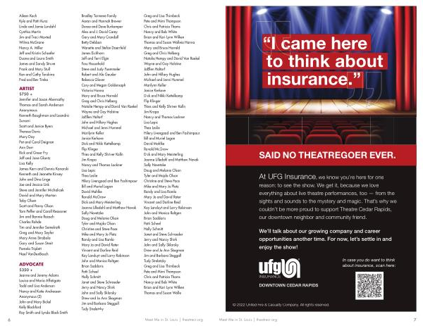 ARTIST $ 750 + Jennifer and Jason Abernathy Thomas and Sarah Anderson Anonymous Kenneth Baughman and Leandra Sunseri Scott and Janice Byers Theresa Davis Mary Day Pat and Carol Deignan Ann Dorr Rick and Greer Fry Jeff and Jane Glantz Lisa Kelly James Kern and Dennis Konarski Kenneth and Jeanette Kinsey John and Dina Linge Joe and Jessica Link Steve and Jennifer Michalicek David and Mary Morton Toby Olsen Scott and Penny Olson Tom Peffer and Caroll Reasoner Jim and Bonnie Raasch Charles Rohde Tim and Jennifer Semelroth Greg and Mary Seyfer Mary Anne Strabala Gary and Susan Streit Pamela Triplett Noel VanDenBosch