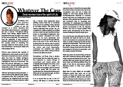 It is a fact though, that although the birth of modernity has made its way in our world, most male-headed art companies still look down on works created by women as less capable and inadequate. These men are the Mr. Tansels of the time, and even though they feel in charge, there were the Lilys, who are resistant to this kind of oppression, and who always emerge victorious.