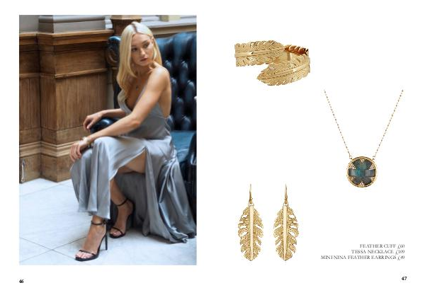 FEATHER CUFF £60 TESSA NECKLACE £109 MINI NINA FEATHER EARRINGS £49 47