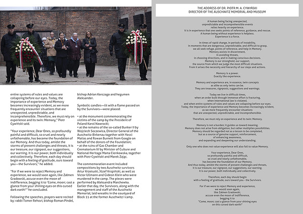• at the ruins of Gas Chamber and Crematorium IV by Minister of Culture and National Heritage Marta Cienkowska, together with Piotr Cywiński and Marek Zając.