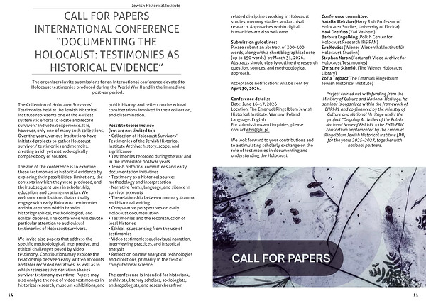 We look forward to your contributions and to a stimulating scholarly exchange on the role of testimonies in documenting and understanding the Holocaust.