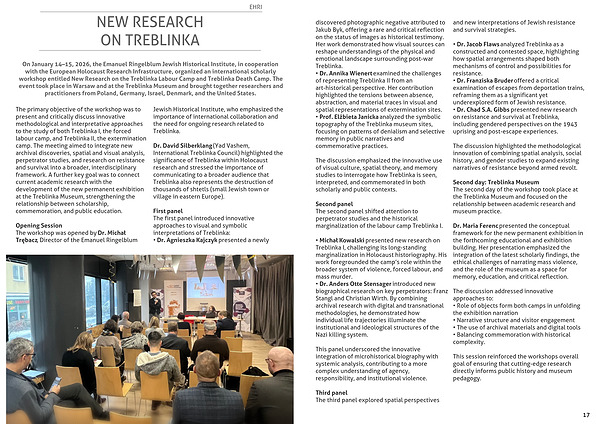 The primary objective of the workshop was to present and critically discuss innovative methodological and interpretative approaches to the study of both Treblinka I, the forced labour camp, and Treblinka II, the extermination camp. The meeting aimed to integrate new archival discoveries, spatial and visual analysis, perpetrator studies, and research on resistance and survival into a broader, interdisciplinary framework. A further key goal was to connect current academic research with the development of the new permanent exhibition at the Treblinka Museum, strengthening the relationship between scholarship, commemoration, and public education.