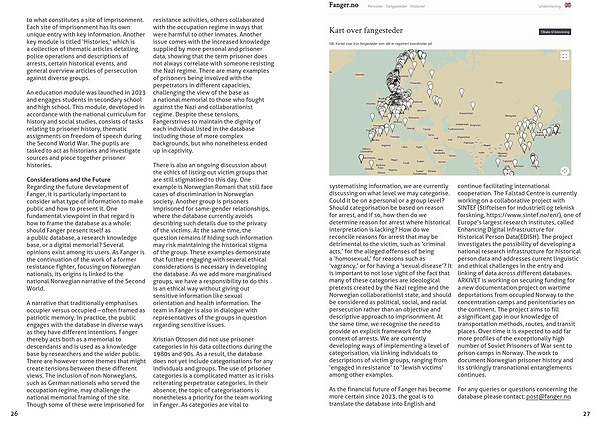 a public database, a research knowledge base, or a digital memorial? Several opinions exist among its users. As Fanger is the continuation of the work of a former resistance fighter, focusing on Norwegian nationals, its origins is linked to the national Norwegian narrative of the Second World.