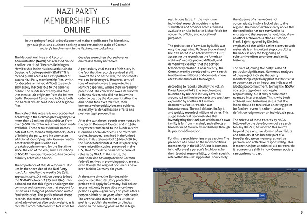 After the war, these records were housed in the Berlin Document Center, and in 1994, they were transferred to the Bundesarchiv (German Federal Archives). The microfilm copies, however, remained in the United States. In its statement of 19 March 2026, the Bundesarchiv noted that it is precisely these microfilm copies, preserved in the U.S., that formed the basis of the current release by NARA. In this sense, the American side has outpaced the German federal archives in providing public access, even though the original documents have been held in Germany for years.