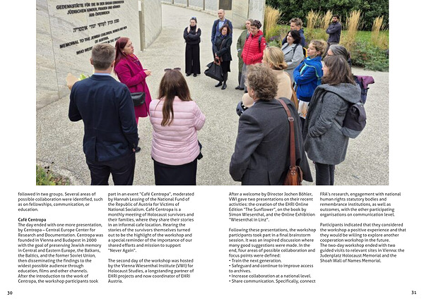 • Share communication. Specifically, connect FRA’s research, engagement with national human rights statutory bodies and remembrance institutions, as well as outcomes, with the other participating organisations on communication level.