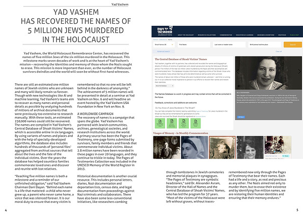 The achievement of 5 million names will be presented in detail at a seminar at Yad Vashem on Nov. 6 and will headline an event hosted by the Yad Vashem USA Foundation in New York on Nov. 9.