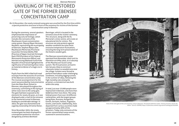 On 25 November, the newly restored camp gate was unveiled for the first time within a special protective structure in front of the cemetery for victims of the German concentration camp in Ebensee.