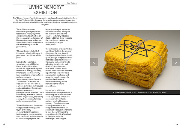 The artifacts, artworks, documents, photographs and testimonies on display in the exhibition invite reflection on the preservation and shaping of Holocaust memory, and on our sacred responsibility to pass the torch of memory to future generations.
