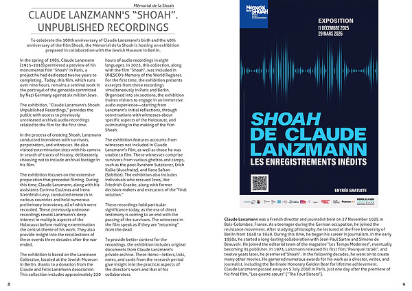 To celebrate the 100th anniversary of Claude Lanzmann's birth and the 40th anniversary of the film Shoah, the Mémorial de la Shoah is hosting an exhibition prepared in collaboration with the Jewish Museum in Berlin.