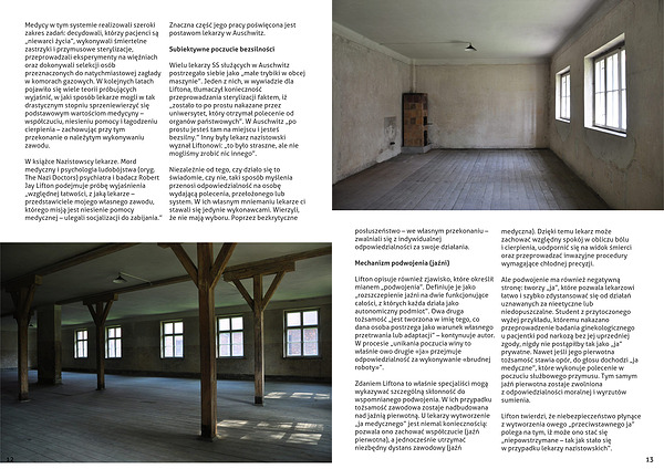 Niezależnie od tego, czy działo się to świadomie, czy nie, taki sposób myślenia przenosi odpowiedzialność na osobę wydającą polecenia, przełożonego lub system. W ich własnym mniemaniu lekarze ci stawali się jedynie wykonawcami. Wierzyli, że nie mają wyboru. Poprzez bezkrytyczne posłuszeństwo – we własnym przekonaniu – zwalniali się z indywidualnej odpowiedzialności za swoje działania.